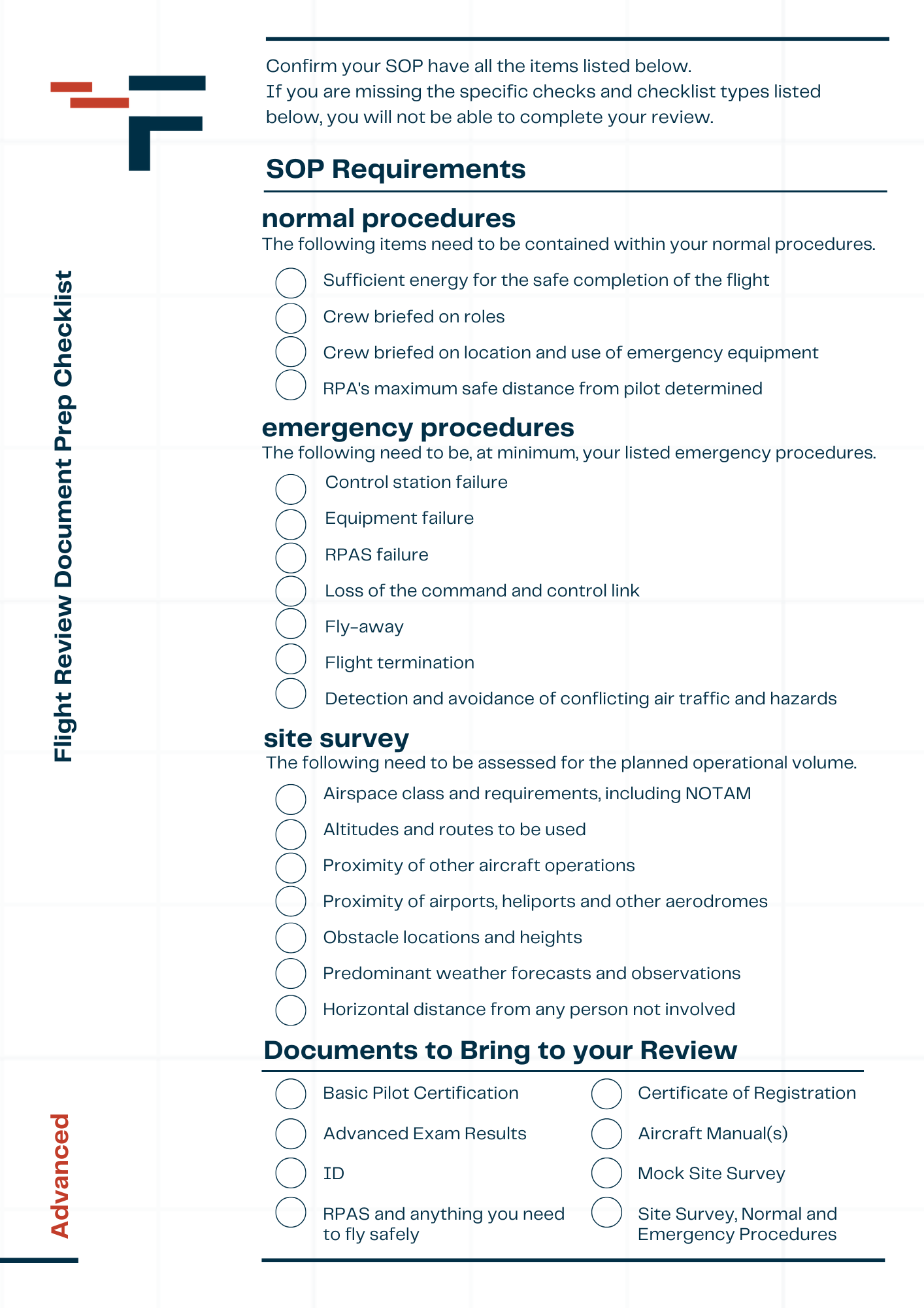 Our Flight Review Prep course provides candidates with, among other things, a checklist to ensure their SOP contain all the required items. Not fun to fail a review before you even get to fly because you’re missing a CARs-mandated item!